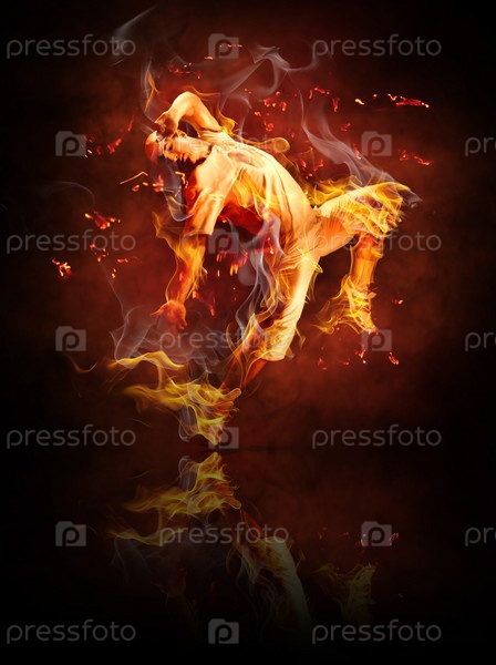 Огненный человек на черном фоне