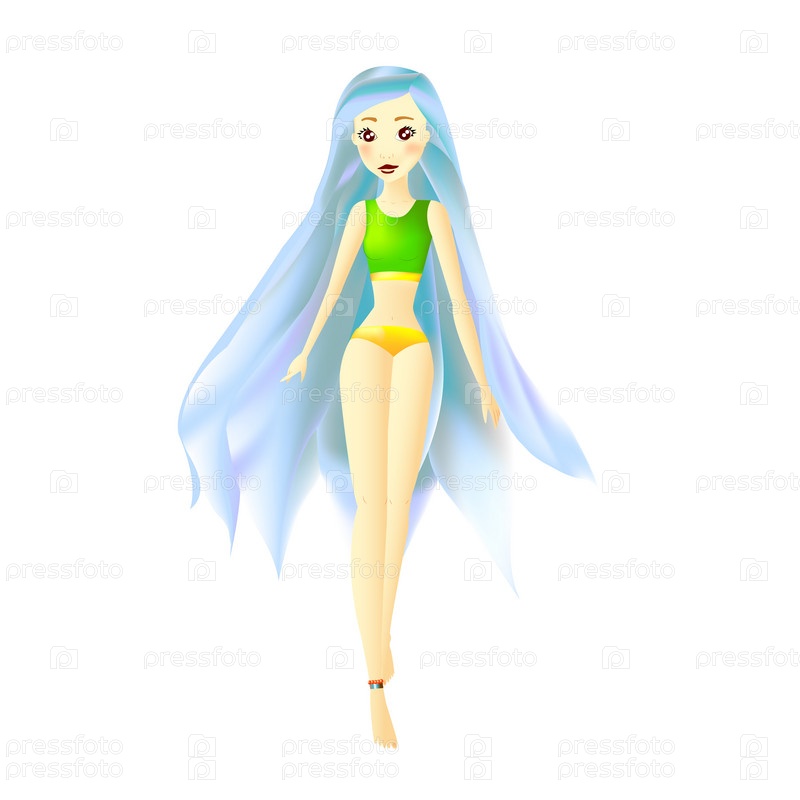 Молодая девушка с голубыми волосами