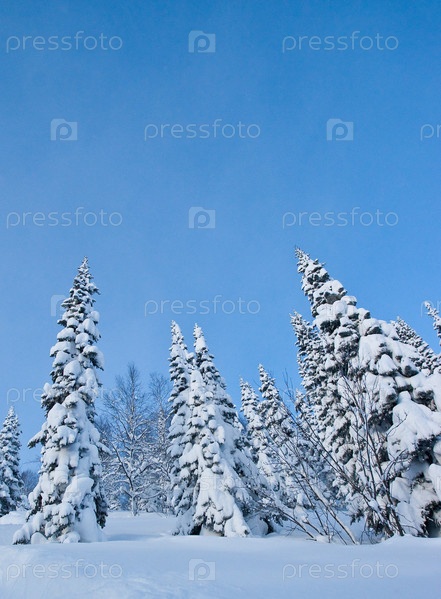 Заснеженные ели в Хакасии