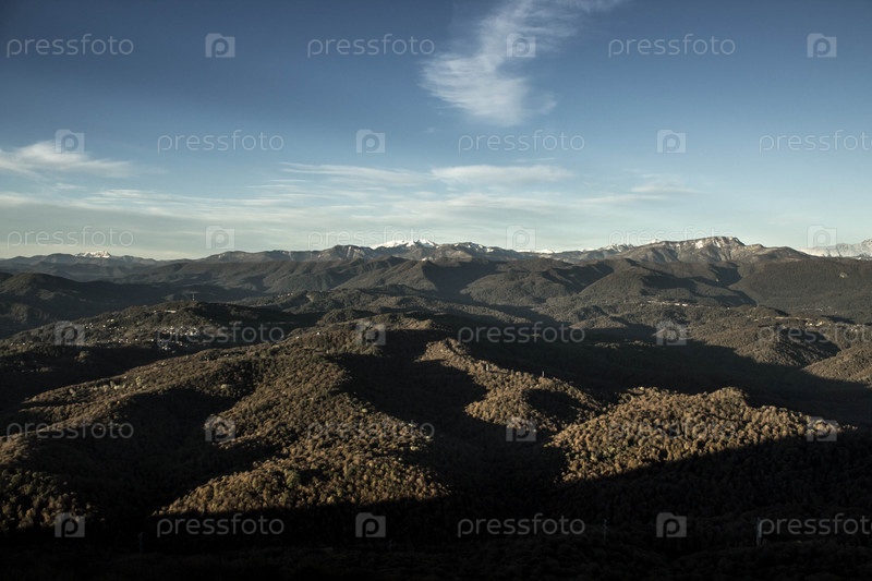 Вид на заснеженные горы с горы Ахун в Сочи, Россия