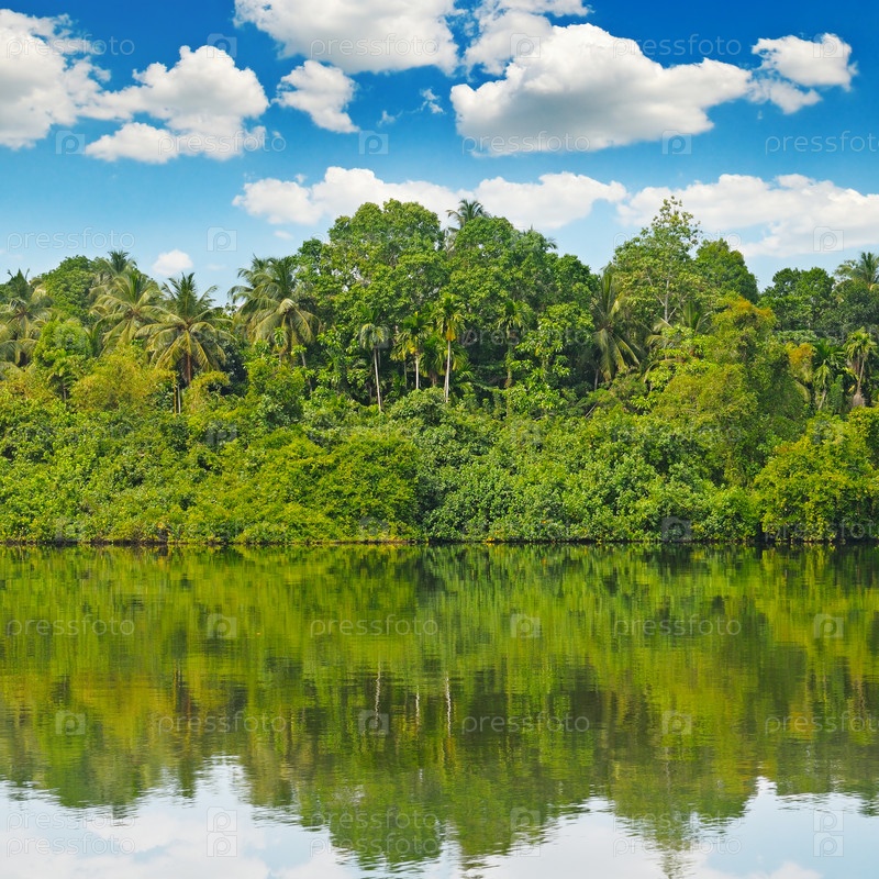 Тропический пальмовый лес на берегу реки