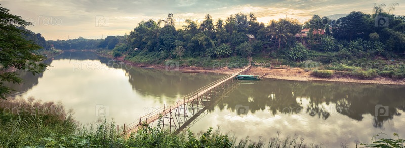 Прекрасный вид бамбукового моста. Лаос