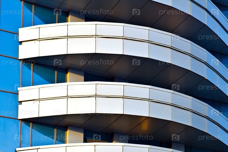 Abstract диагональный урожай синего офисного небоскреба балкона