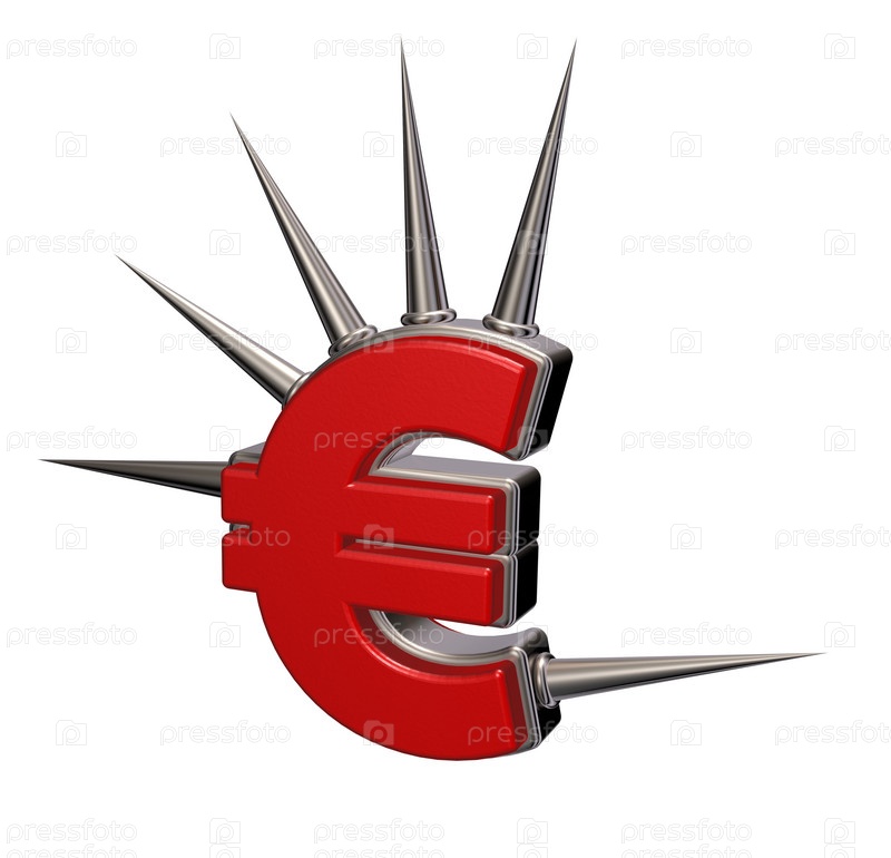 Символ евро с шипами на белом фоне - 3d иллюстрация