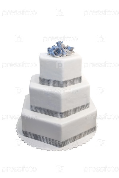Трехуровневый свадебный торт, украшенный бриллиантами, изолированный на белом