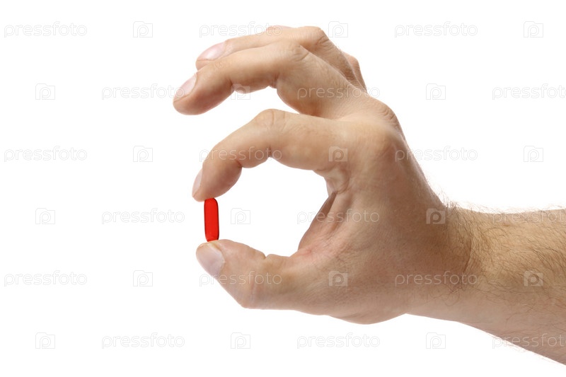 Рука и таблетки. Медицинские капсулы на белом фоне