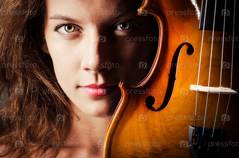 Женщина со скрипкой в темной комнате