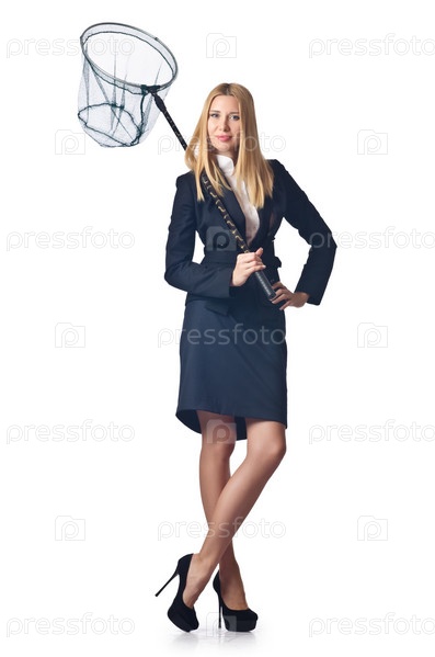 Женщина с сетью, изолированная на белом фоне