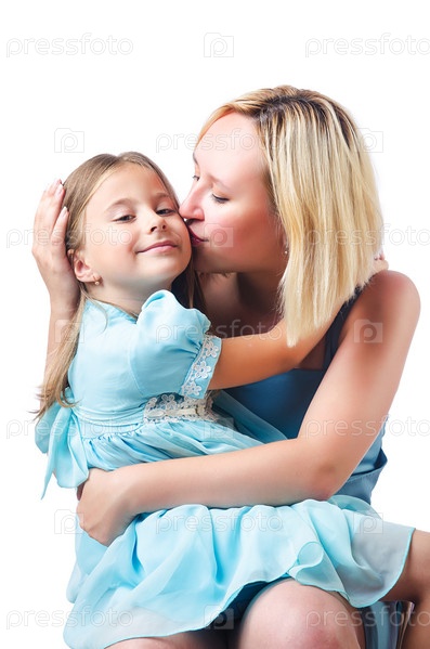 Мать с дочерью, изолированные на белом