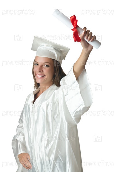 Молодой студент с дипломом на белом