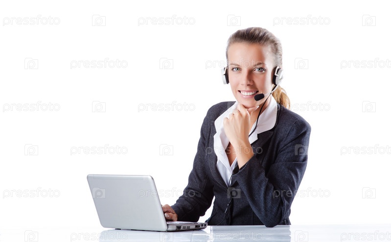 Оператор службы поддержки на белом фоне