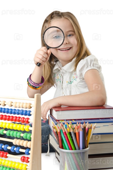Девочка с книгами и счетами