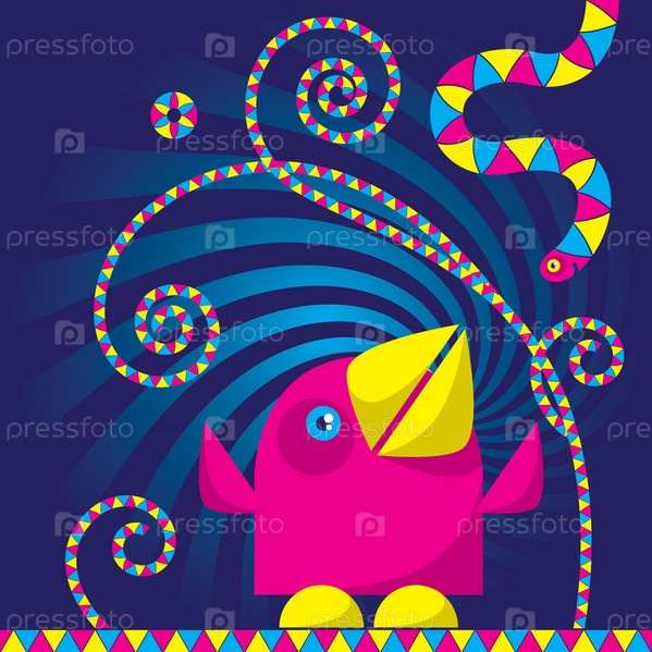 Мультяшная птица охотится на умного червя