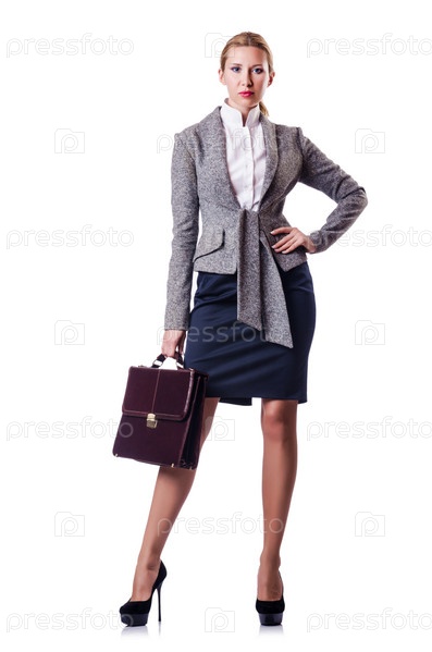 Предприниматель с портфелем на белом фоне