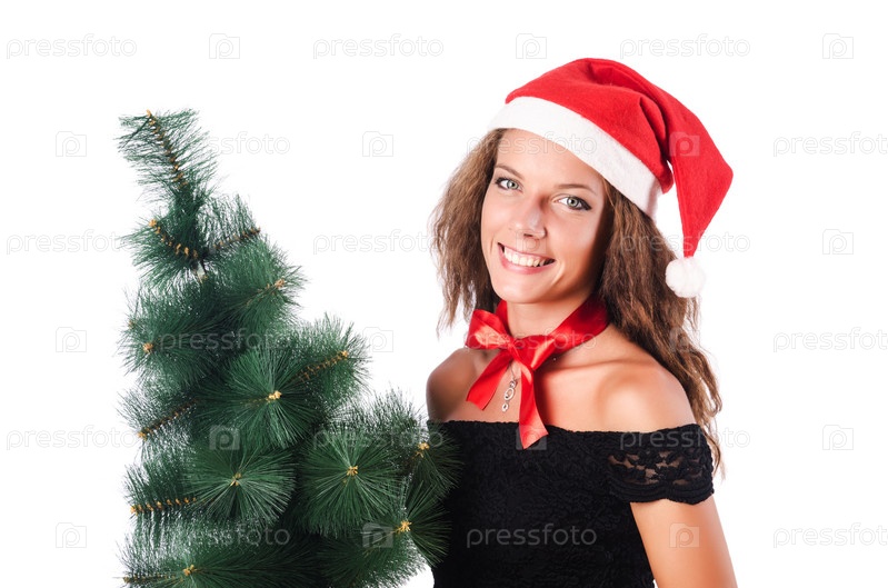 Рождественская девушка, изолированная на белом