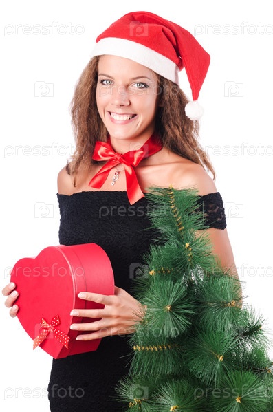 Рождественская девушка, изолированная на белом