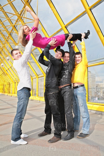 Молодые люди подняли девушку на руках