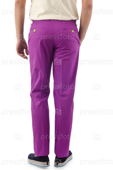 Модель в брюках на белом фоне