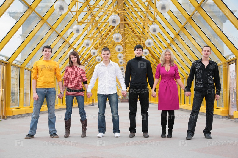 Молодые люди стоят, взявшись за руки