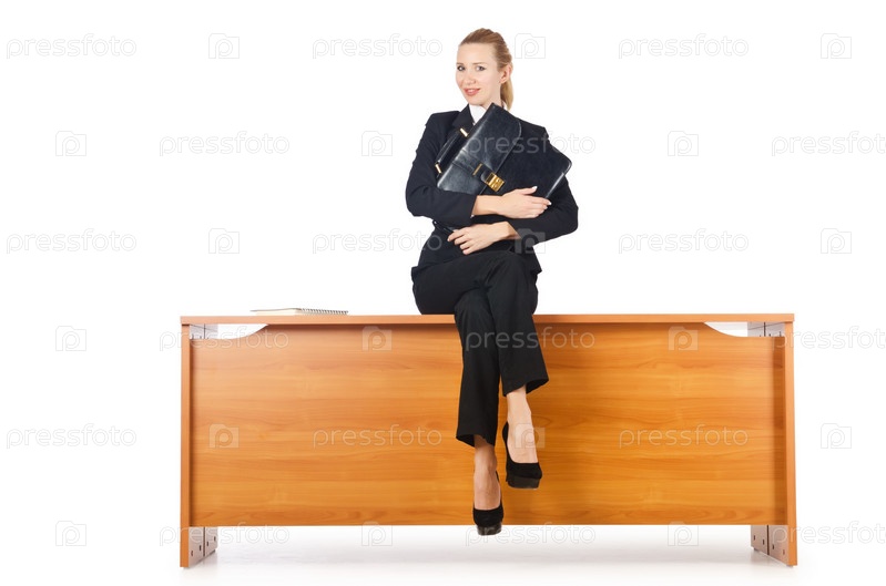 Бизнес-леди сидит на столе