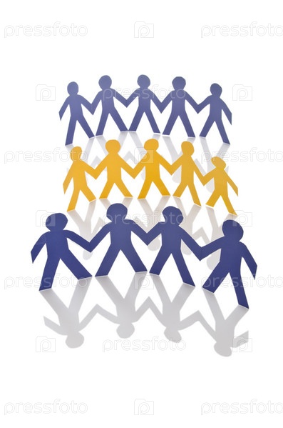 Концепция совместной работы с вырезанными из бумаги человечками