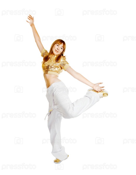 Танцующая девушка на белом фоне