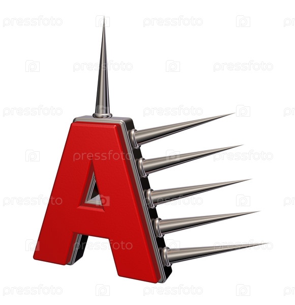 Буква А с металлическими шипами на белом фоне. 3d иллюстрация