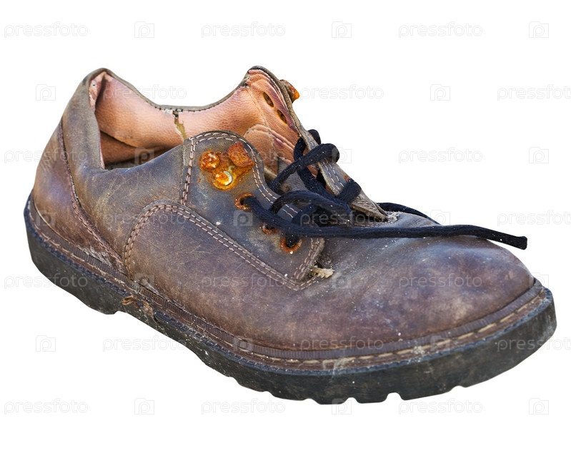 Старый изношенный ботинок, на белом фоне