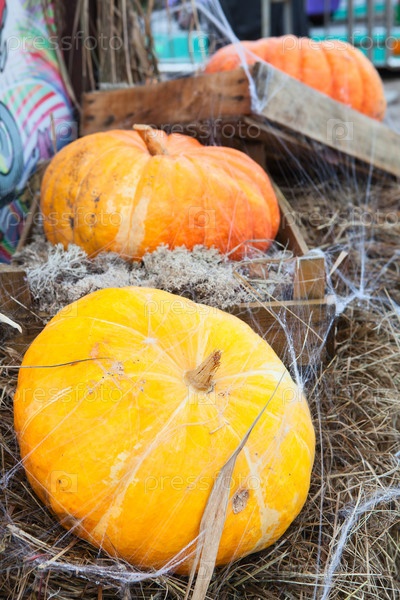 Желтые и оранжевые спелые тыквы, готовые к хранению