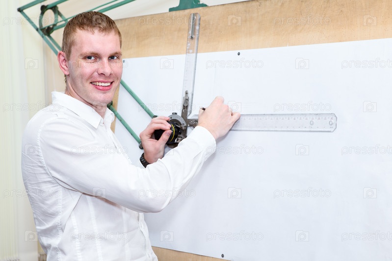 Красивый инженер у доски на рабочем месте