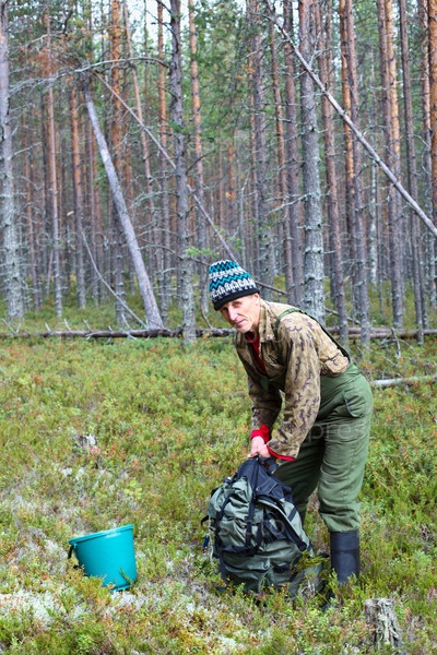 Человек с рюкзаком в лесу
