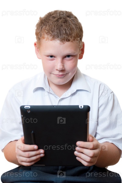 Мальчик держит в руках планшетный компьютер