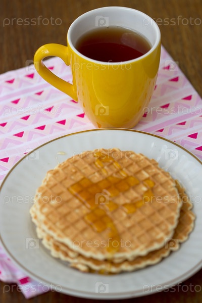 Круглые вафли и чашка чая