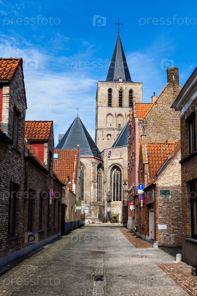 Европейская средневековая улица. Брюгге, Бельгия, Европа