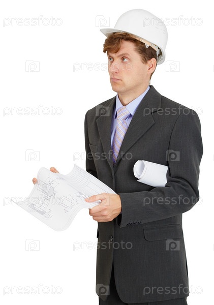 Инженер - строитель, на белом фоне
