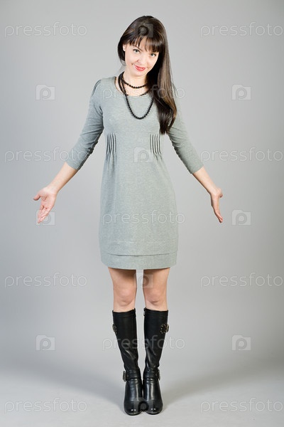 Красивая девушка в платье на сером фоне
