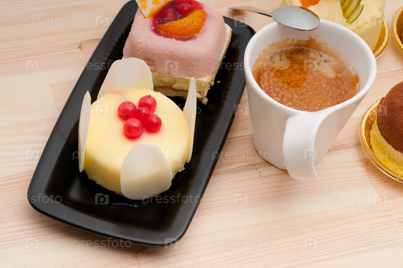 Кофе эспрессо и фруктовое пирожное