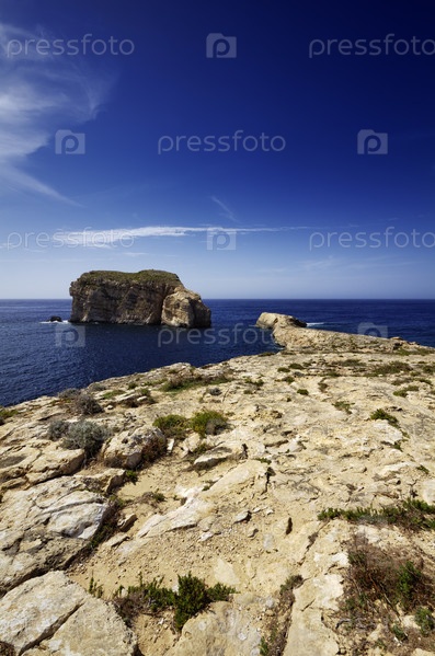 Остров Мальта, Гозо, лагуна Двейра, скалистое побережье вблизи скалы "Голубое окно"