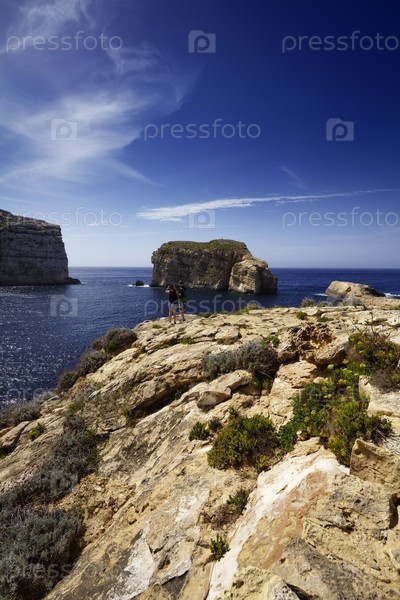 Остров Мальта, Гозо, залив Двейра, скалистое побережье вблизи скалы "Голубое окно"