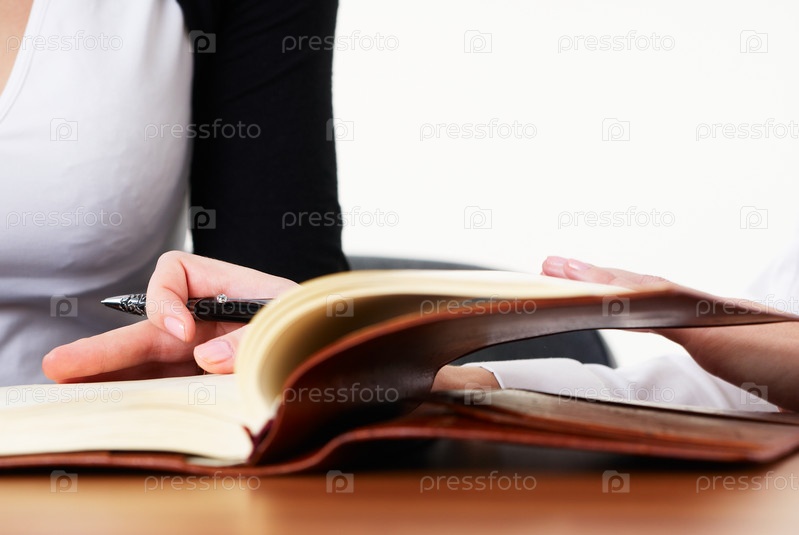 Женщина пишет в ежедневнике