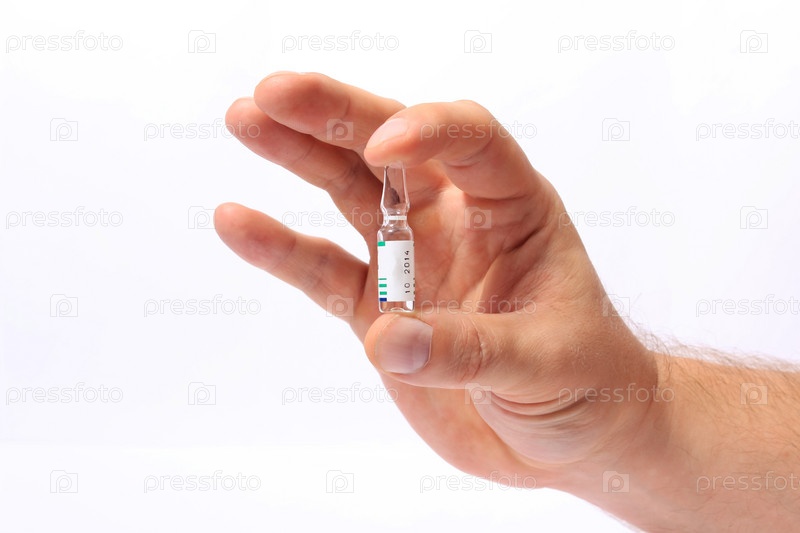Ампула в руке, изолировано на белом фоне