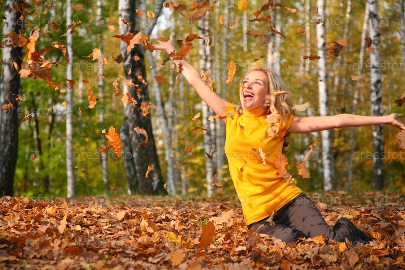 Радостная девушка в осеннем лесу