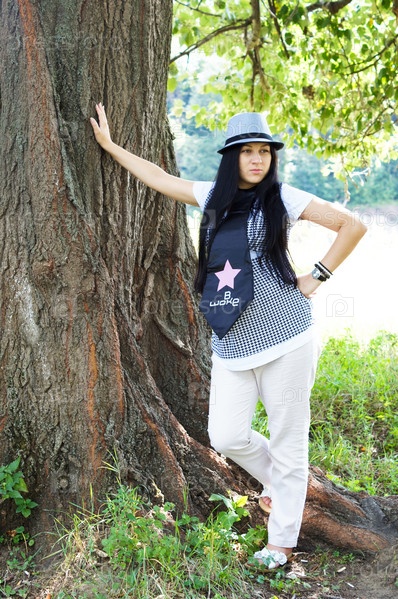 Беременная женщина на прогулке в городском парке