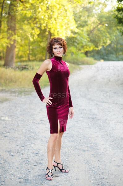 Девушка в вечернем платье на природе
