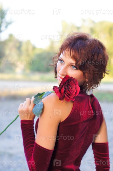 Девушка в красном платье с розой