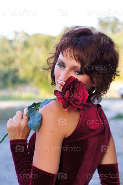 Девушка в красном платье с розой