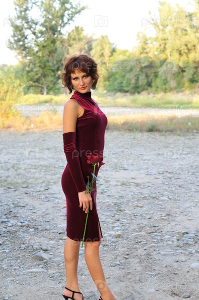 Девушка в красном платье с розой