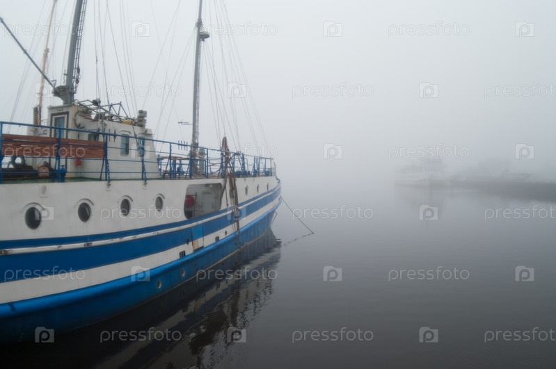 Судно в тумане вблизи порта