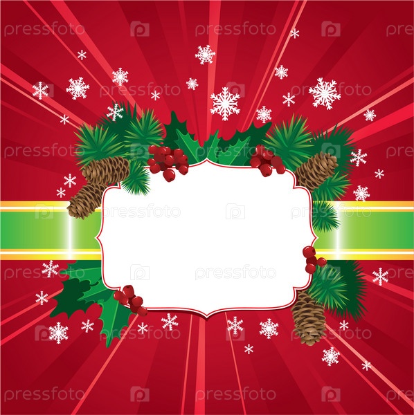Рождественский красный фон с остролистом и рождественской елкой