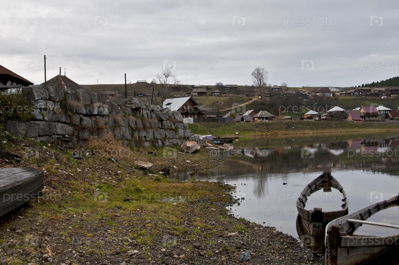 Заводская пристань (конец 18 в.) с видом на село Кын. Пермский край